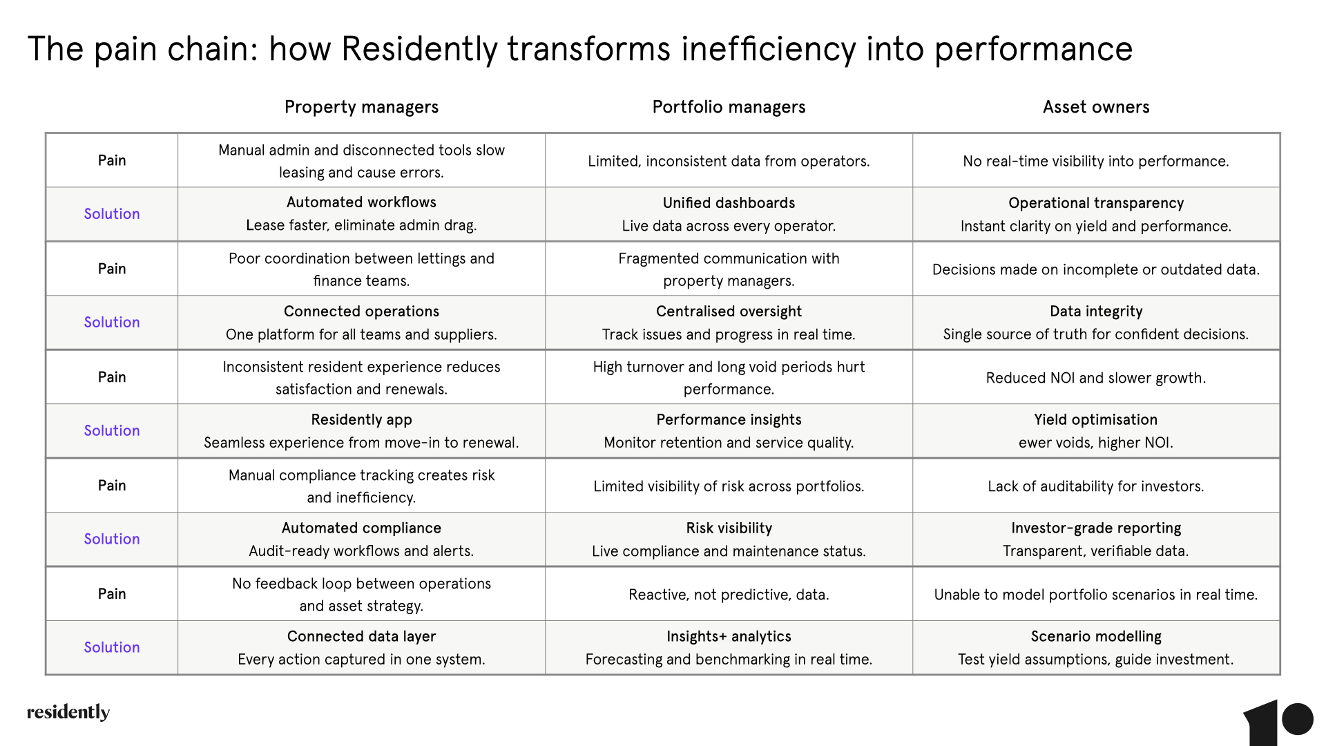 Residently isn’t an agency tool or a bolt-on app. It’s purpose-built for institutional portfolios that demand scale, control and auditability.